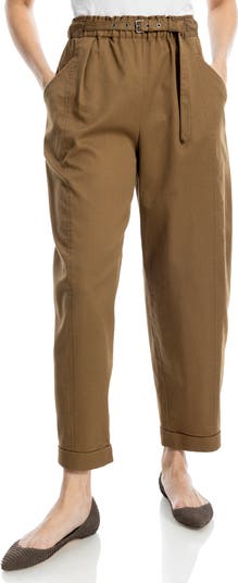 Barrel legs put a trend-forward spin on these pique cotton pants defined at the waist with frilly ruffles and coordinating belt.