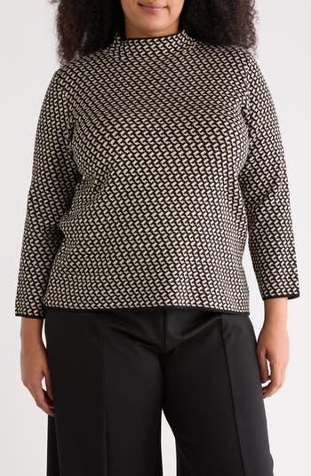 A subtle check pattern decorates this cozy mock-neck sweater that's equal parts chic and comfortable.