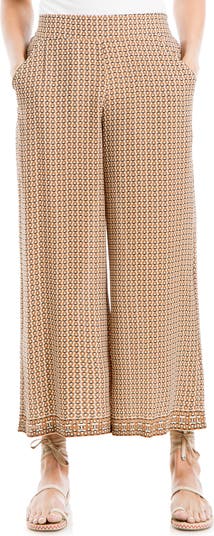 A stretchy elastic waistband keeps you comfortable in wide-leg pants featured in a bold pattern for eye-catching style.