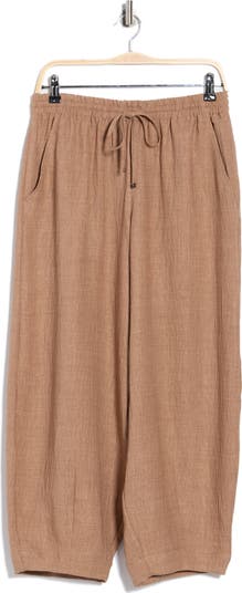 Refres your weekend ensembles with these pull-on textured pants styled with a lantern leg and handy pockets.
