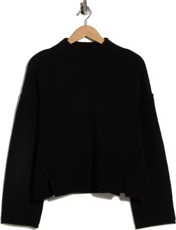 Exposed seams amplify the cuddly cold-weather vibe of a turtleneck sweater knit with a hint of wool to elevate your look.