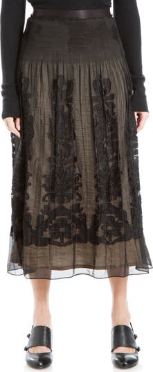 A crinkled construction contrasts with the floral jacquard to make an elegant midi skirt that'll become a staple in your special occasion collection.