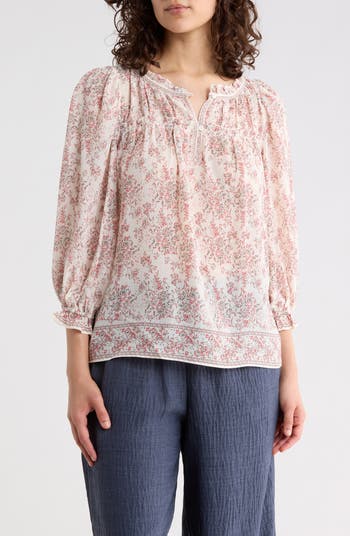 • MAX STUDIO Square Neck Puff Sleeve Cotton Blend Top