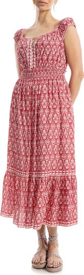 A charming floral print covers this dreamy midi dress shaped by smocking at the waist.
