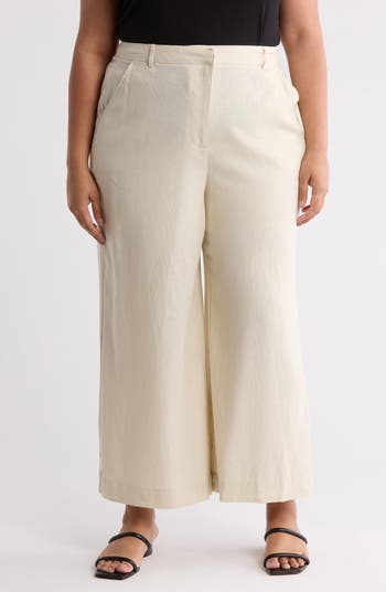 Enjoy the breathable comfort of lightweight linen-blend pants cut in a cropped wide-leg silhouette.