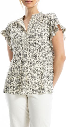 A mix of prints gives a mesmerizing finish to this stretch-woven top cut with a curved hem that subtly sways with your every move.