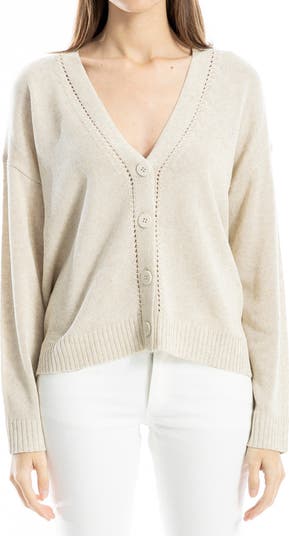 Airy pointelle stitches bring charm to this buttoned cardigan knit from a blend enhanced with Tencel.