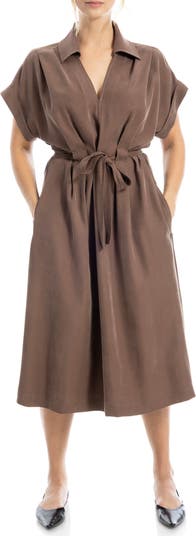 Rolled cuffs and handy pockets dial up the workwear vibes of a midi-length shirtdress complete with a matching tie belt.