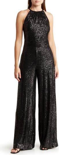 Sparkle all night long in this sequin-embellished jumpsuit fashioned in a wide-leg silhouette for contemporary allure.