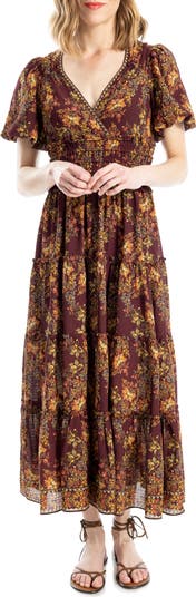 This surplice V‑neck maxi dress with fluttery sleeves and a smocked waist flows with effortless grace and a flattering silhouette.