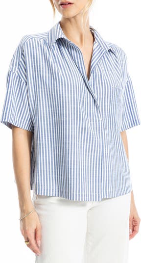 Perfect for work or the weekend, this lightweight striped top features a split neckline with a collar and drop-shoulder sleeves.