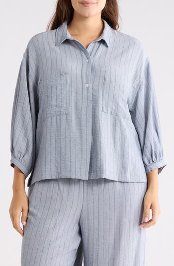 Breeze through your day in this button-front popover shirt framed by gently puffed sleeves and chest pockets for casual style.