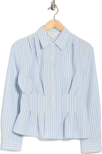 Stripe Long Sleeve Pleated Button-Up Shirt
