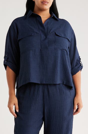 Channel a cool, coastal aesthetic in this breathable woven shirt covered in a rich textured and framed by patch pockets.