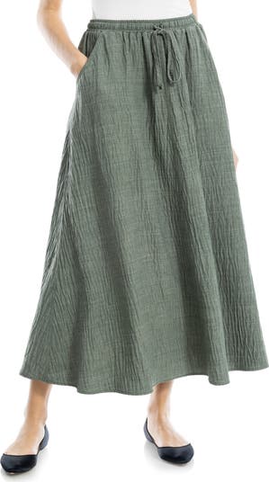 A rich texture distinguishes this casual maxi skirt that's cropped above your ankle for a fresher take.