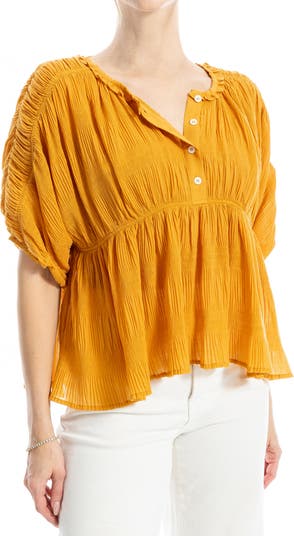 • MAX STUDIO Cap Sleeve Ruched Crinkled Knit Top