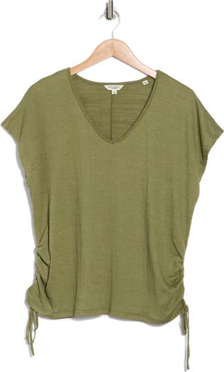 Dainty side-tie cinching defines the versatile silhouette of this V-neck top.