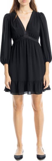 Elevate your weekend ensembles with this flowy mini styled with a deep V-neckline and slightly puffed sleeves.