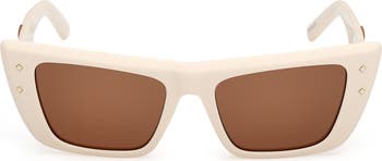 Bold cat-eye frames bring a cool aesthetic to trend-savvy sunglasses designed with scratch-resistant CR-39 lenses and signature logo branding at the temples.