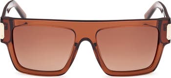 A flat browline sharpens the modern edge of these Italian square sunglasses finished with gleaming branded temple accents.
