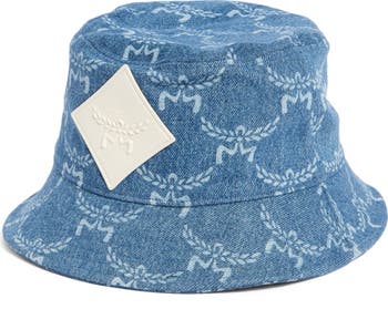 A logo-jacquard design adds signature design style to this denim bucket hat that'll keep you shaded while looking cool.