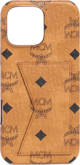 This leather case with an allover monogram print and card pocket delivers stylish protection for your iPhone.