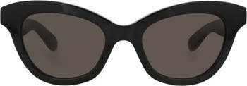 Retro vibes meet striking flair with Havana-patterned cat-eye shades featuring designer branding at the temples.