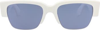 Paint stroke-inspired branding highlights the temples of these Italian sunglasses fashioned in a sleek half-rim silhouette.