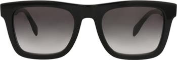 Bold branding highlights the temples of these designer sunglasses fashioned in a classic square silhouette.