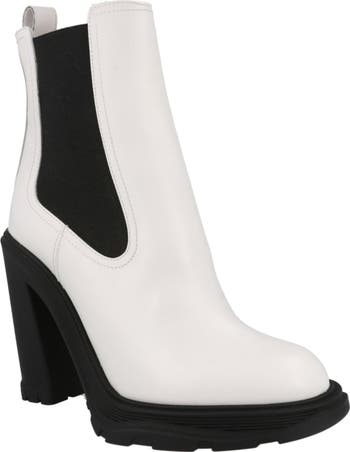 A signature chelsea silhouette distinguishes an Italian-crafted boot shaped from smooth calfskin and lofted by a towering heel that shows off the brand's fusion of edge and luxury.