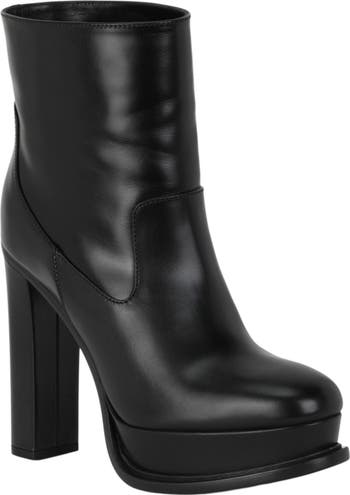 A towering heel brings confidence to each stride in an Italian-crafted bootie shaped from smooth calfskin and done in a minimalist silhouette for modern appeal.