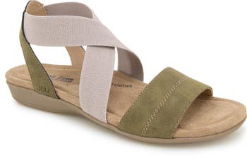 Elastic straps ensure the comfortable fit of this subtle wedge sandal grounded by a contoured footbed and durable traction sole.