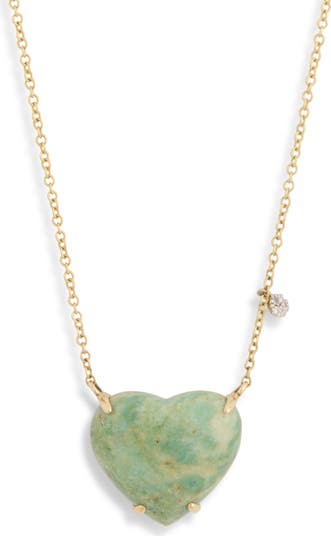 A mica cabochon brings heart to the center of this 14-karat-gold necklace accented with a diamond charm.