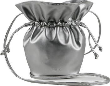 A charming bucket bag has room for essentials and a few extras while the metallic faux-leather construction elevates your special-occasion looks.