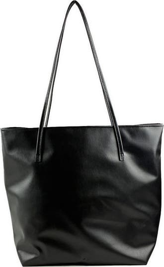 Italian-made vegan leather shapes this sustainable and spacious tote bag topped with slim straps for comfortable over-the-shoulder wear.
