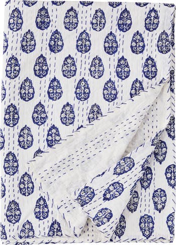 Add a fresh pop of color to your home decor with an airy cotton throw blanket textured with hand-sewn pickstitching.