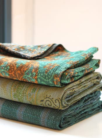 To create each of these one-of-a-kind throws, female artisans in and around Rajasthan, India, cut and stitch vibrantly-hued, recycled, vintage, cotton-saris by hand, using a traditional embroidery technique called kantha to form the intricate stitch-work and designs. Because of how these pieces are made, each is unique in pattern and design, adding a very special accessory to your home. - Color: GOLDEN, BURGUNDY, GREEN, PURPLE, TURQUOISE - 60" x 90" - Imported Orders cannot be shipped to Canada, Puerto Rico, APO, FPO or P.O. Boxes.
