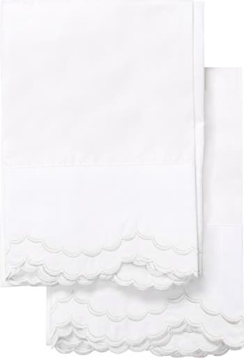 Upgrade your bedroom or guest room with this set of 300 thread count cotton pillowcases featuring double-scalloped edges with embroidery.