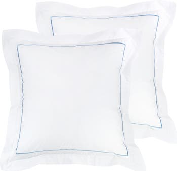 Upgrade your bedroom or guest room with this set of 300 thread count 100% cotton Euro shams featuring a single embroidered line for minimalist style.