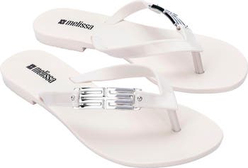 Polished logo hardware makes a signature statement on a minimalist flip flop infused with the brand's iconic fruit scent.