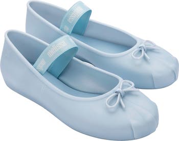 A slightly gathered toe adds interest to this doll-like mary jane fashioned from fruit-scented PVC for sweet strides.