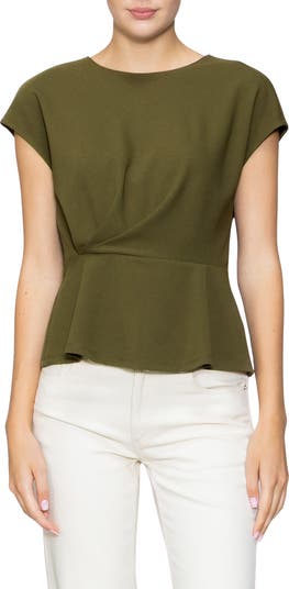 Gentle gathering at the right side shapes this cap-sleeved top that'll take you from desk to dinner with ease.