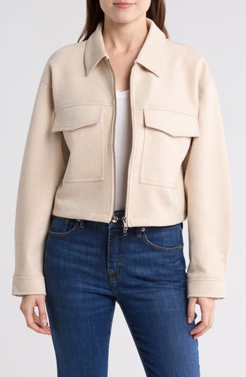 Clean lines and a cropped silhouette define this suede jacket that's ready to complement your everyday look.