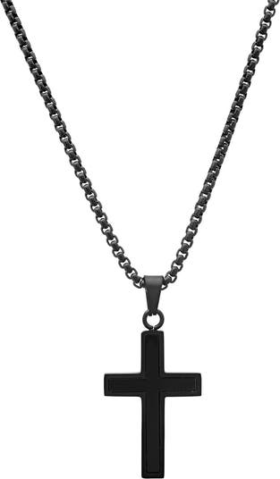 Show your faith with this classic box-chain necklace suspending a minimalist cross pendant crafted from black ion-plated stainless steel.