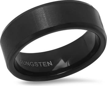 A sandblasted, brushed finish brings contemporary appeal to a black tungsten band ring.