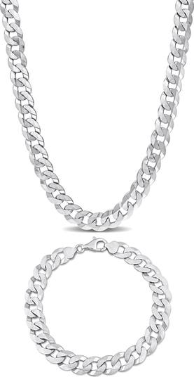 Curbed links bring timeless appeal to this set of a necklace and bracelet crafted in Italy from sterling silver with a high-shine finish to elevate any ensemble.