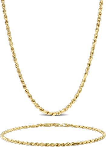 Transform your look with this matching set of a necklace and bracelet crafted in Italy from intricate rope chain that adds instant texture to any ensemble.