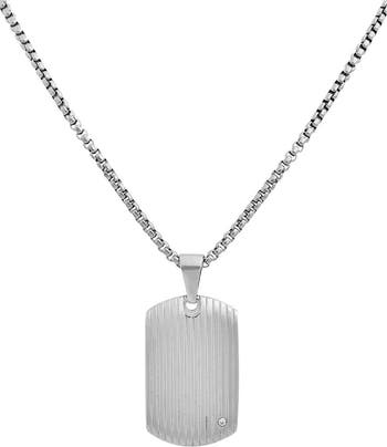 Great to layer or wear solo, this textured dog-tag pendant necklace is crafted from stainless steel and accented by a single flush-set cubic zirconia.