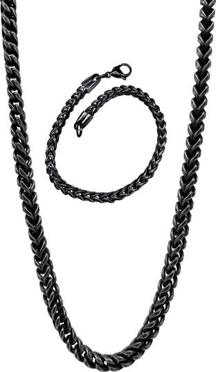 Enhance your look on date nights and special occasions with this matching wheat chain set made from black-rhodium plate.