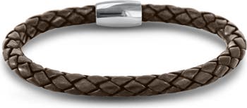 Show off sleek, minimalist style in this woven leather bracelet secured by a gleaming stainless steel magnetic clasp.